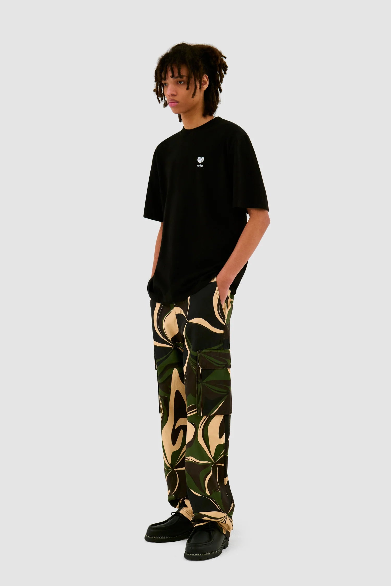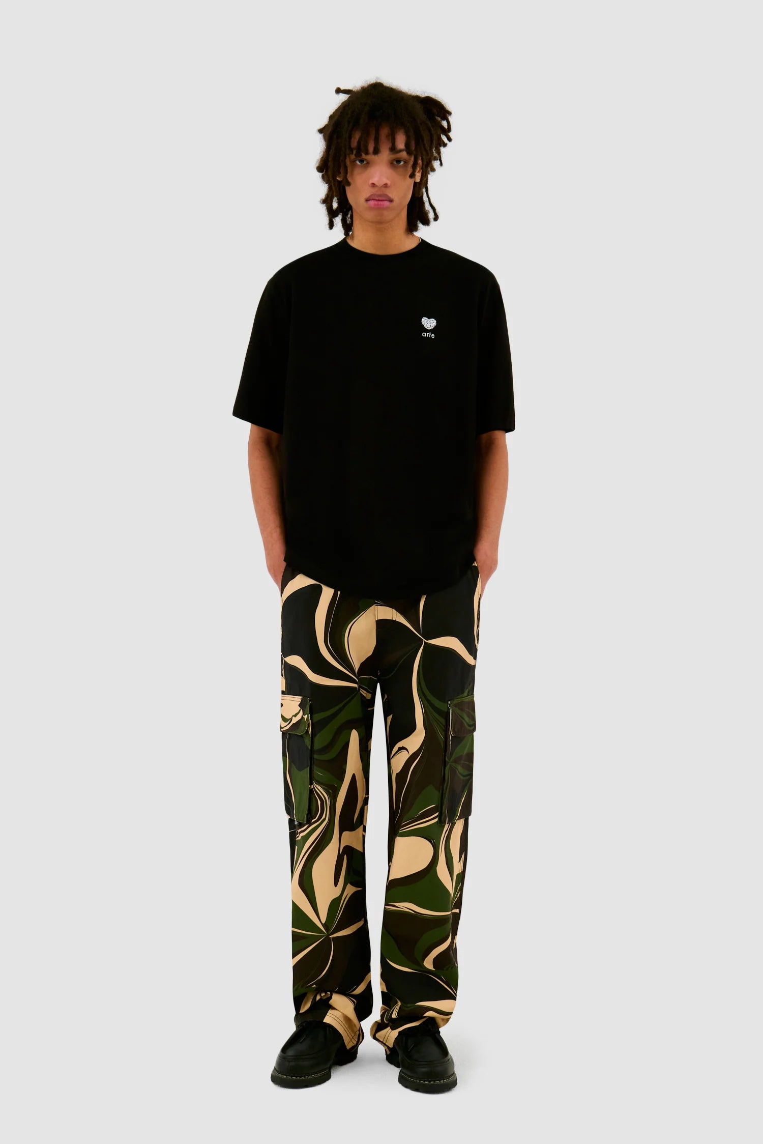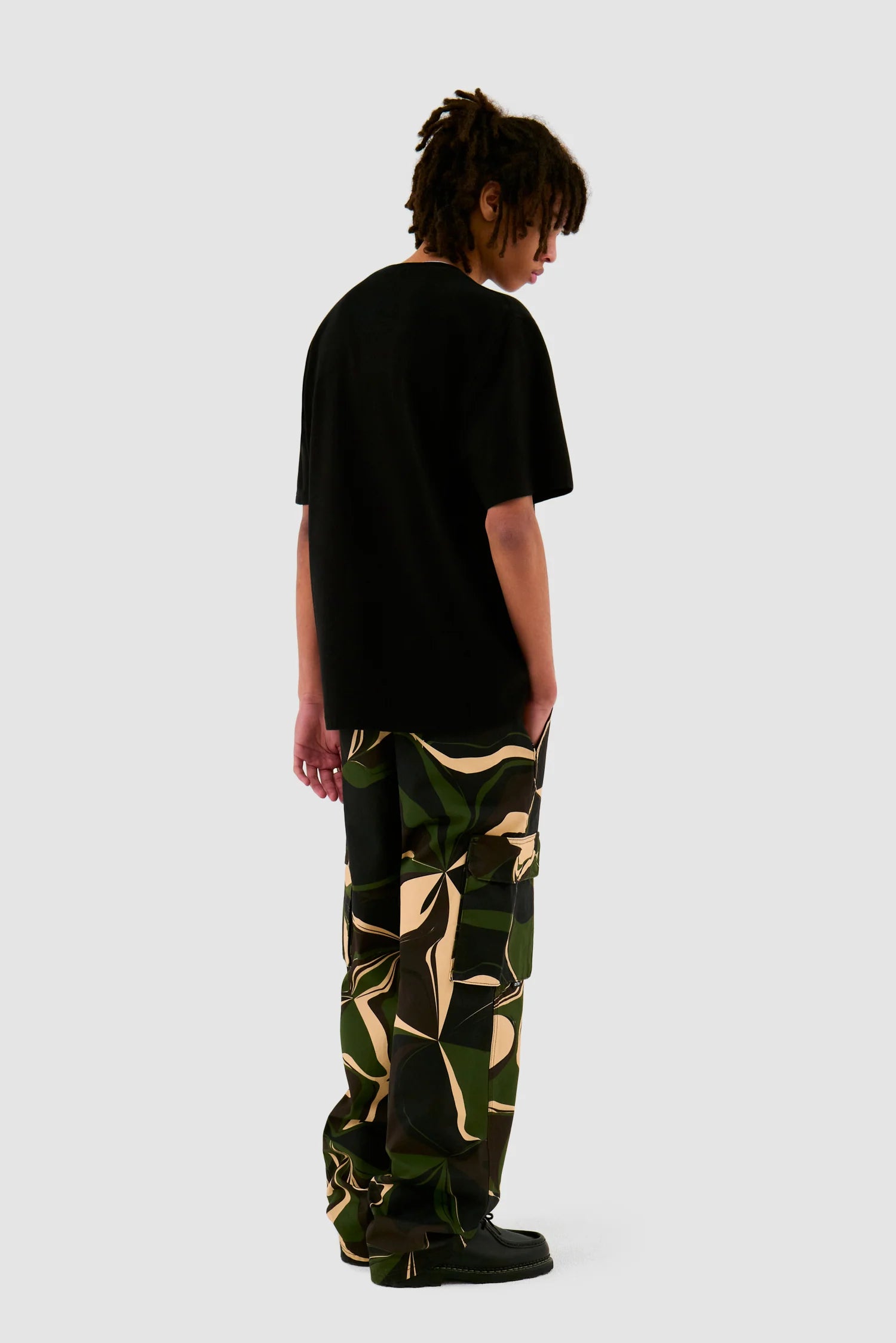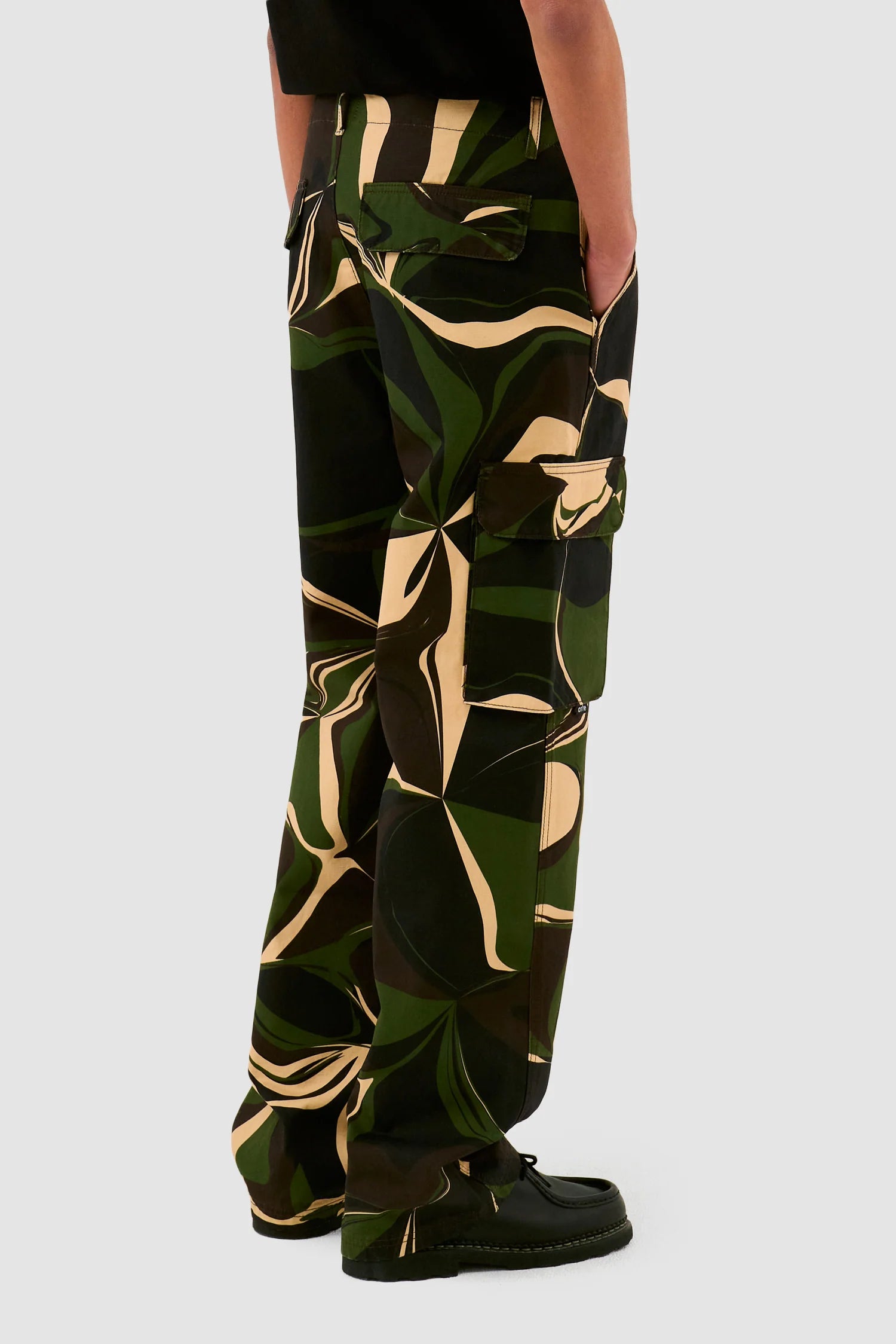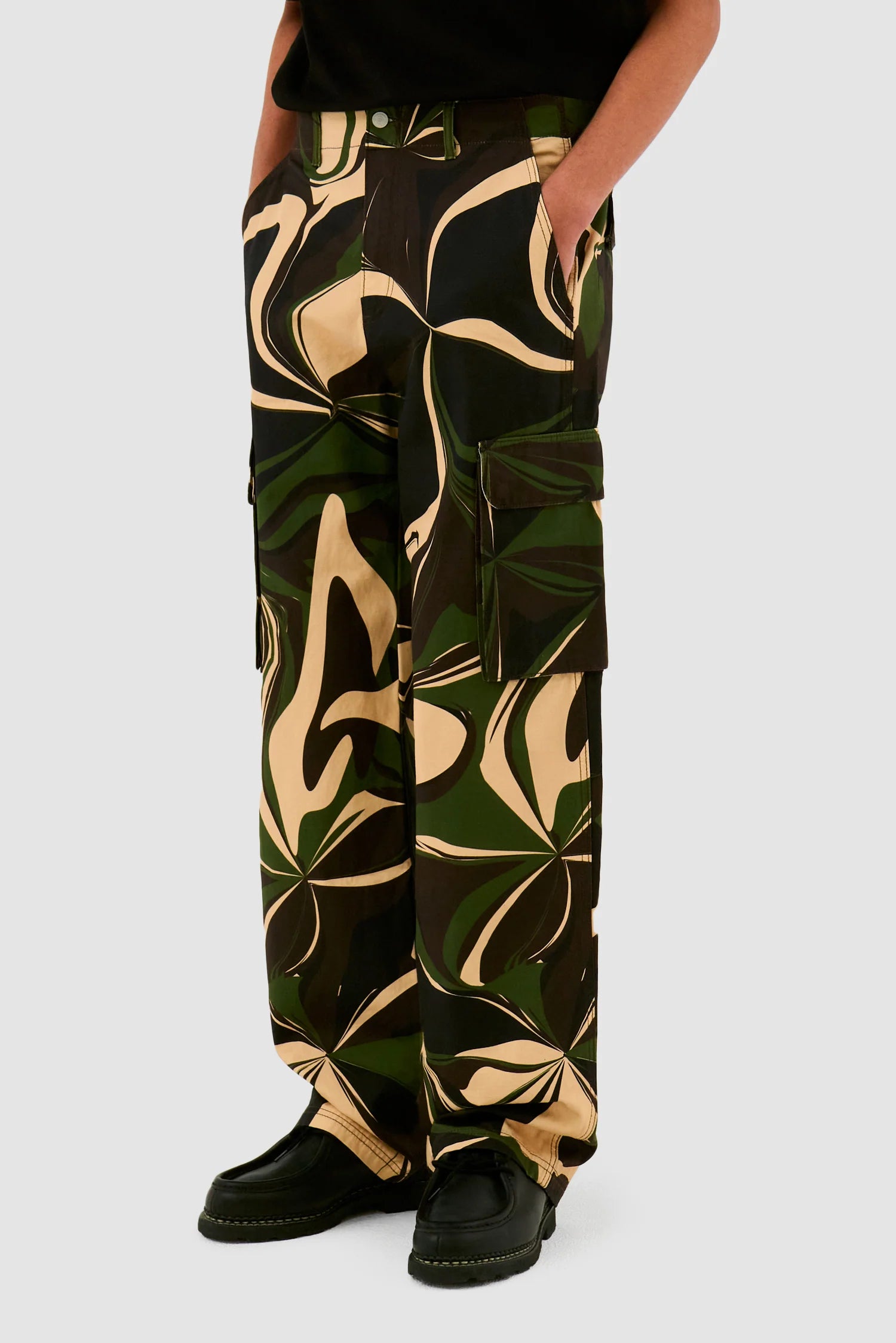 Le pantalon Camo Cargo Pants est fabriqué en coton de première qualité, il présente un imprimé camouflage audacieux et a une coupe large. Le pantalon possède deux poches cargo, deux poches latérales et deux poches arrière pour une fonctionnalité maximale.