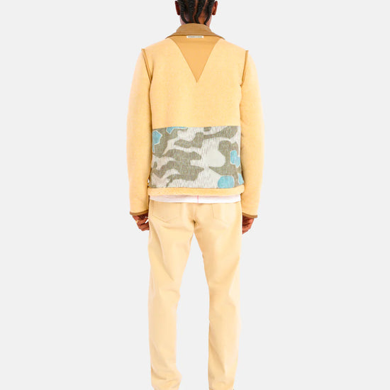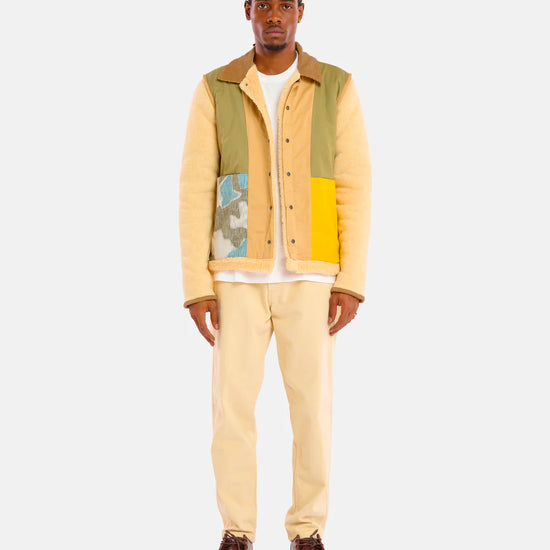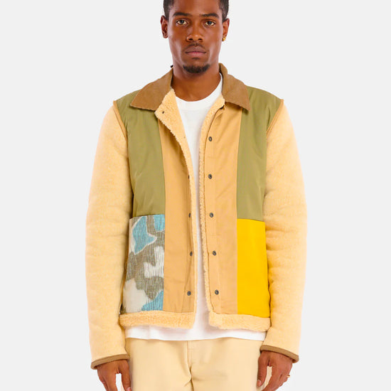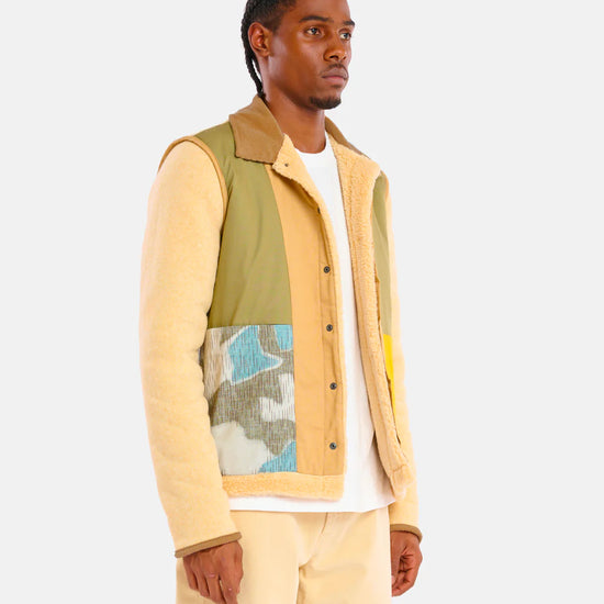 - Veste réversible : une face est en tissus patchwork upcyclée et l'autre en sherpa