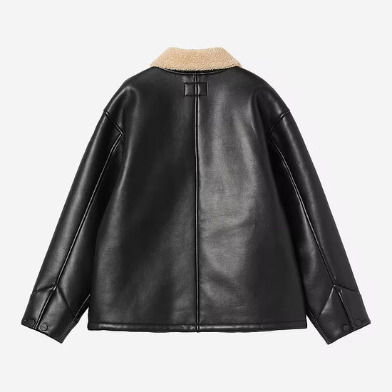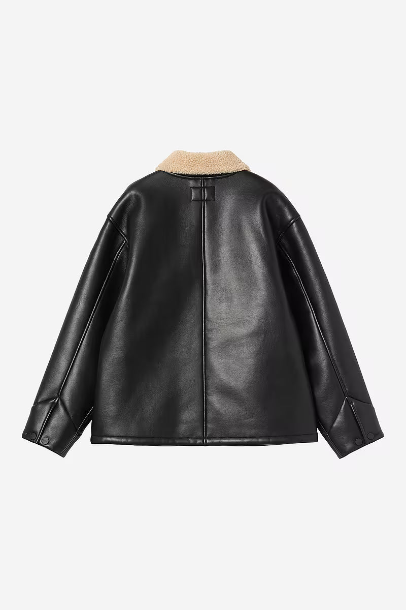 - Veste en cuir synthétique, et en polaire au niveau du col et de la doublure.