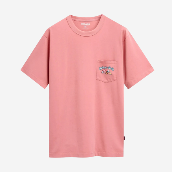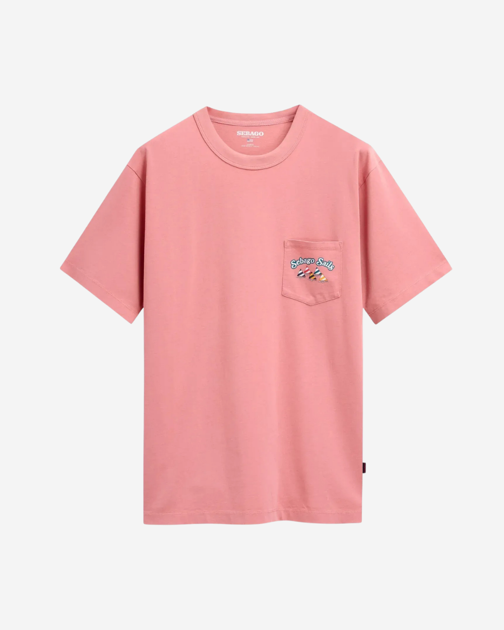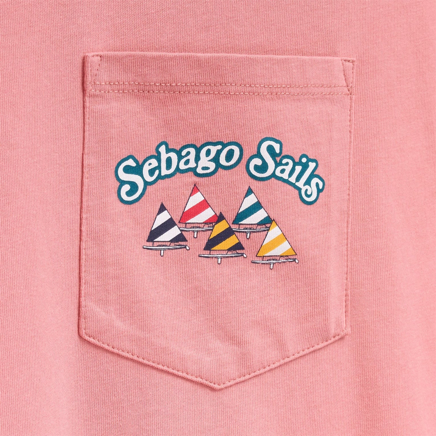 - La poche est ornée d'un imprimé éclatant représentant des voiliers colorés dans une régate, accompagné des mots « Sebago Sails » : une invitation à être guidé par le vent et à profiter de l'été avec une liberté infinie