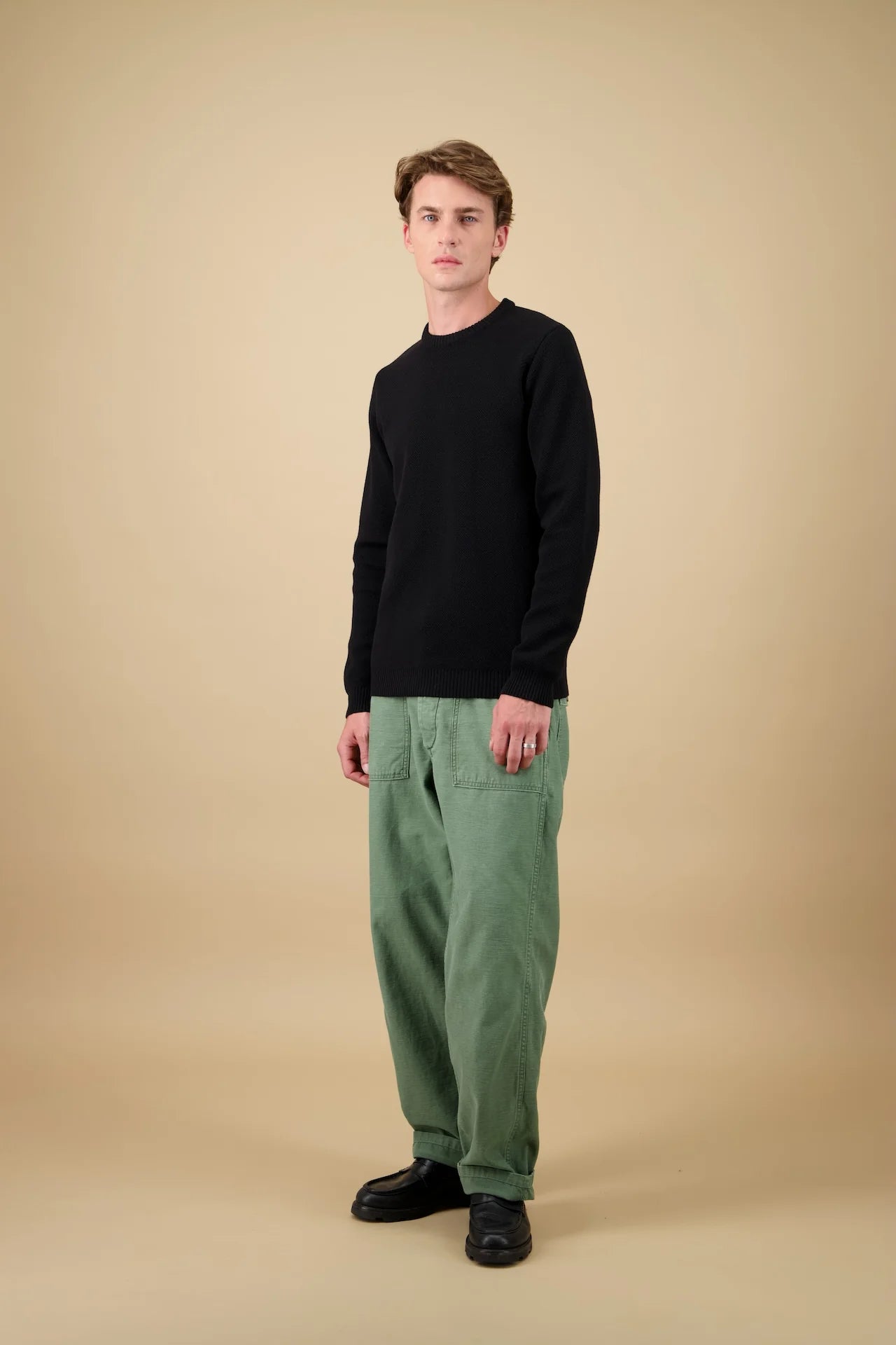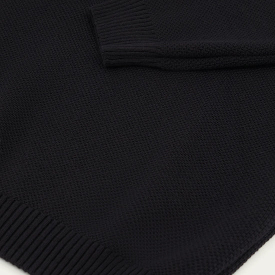 C’est un « classique » dans sa forme et son apparence, mais qui révèle, dans ses détails, tout le savoir-faire de quatre experts, chacun maître dans son domaine : la sélection minutieuse du fil, le choix de la maille, les réglages techniques du tricotage, l’ennoblissement précis et les coutures à la fois fines et robustes qui l’assemblent.